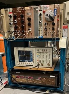 A modular setup for measuring the (μτe) products of thin CdZnTe detectors. This a versatile setup consisting of a series of amplifiers and shaping modules to modify the signals that are fed through a Multichannel Analyzer for discriminating the energies form incoming radiation sources. Hecht relationship is used to measure the mu-tau of thin detectors (1-2 mm) where the drift of the peak channel is measured relative to the applied electric field, curve fitting is then utilized to estimate the mu-tau. Power supply is capable of sourcing voltages from -1100 V to 1100 V and detector currents are limited to <50 nA (compliance set on power supply) for accurate measurements.